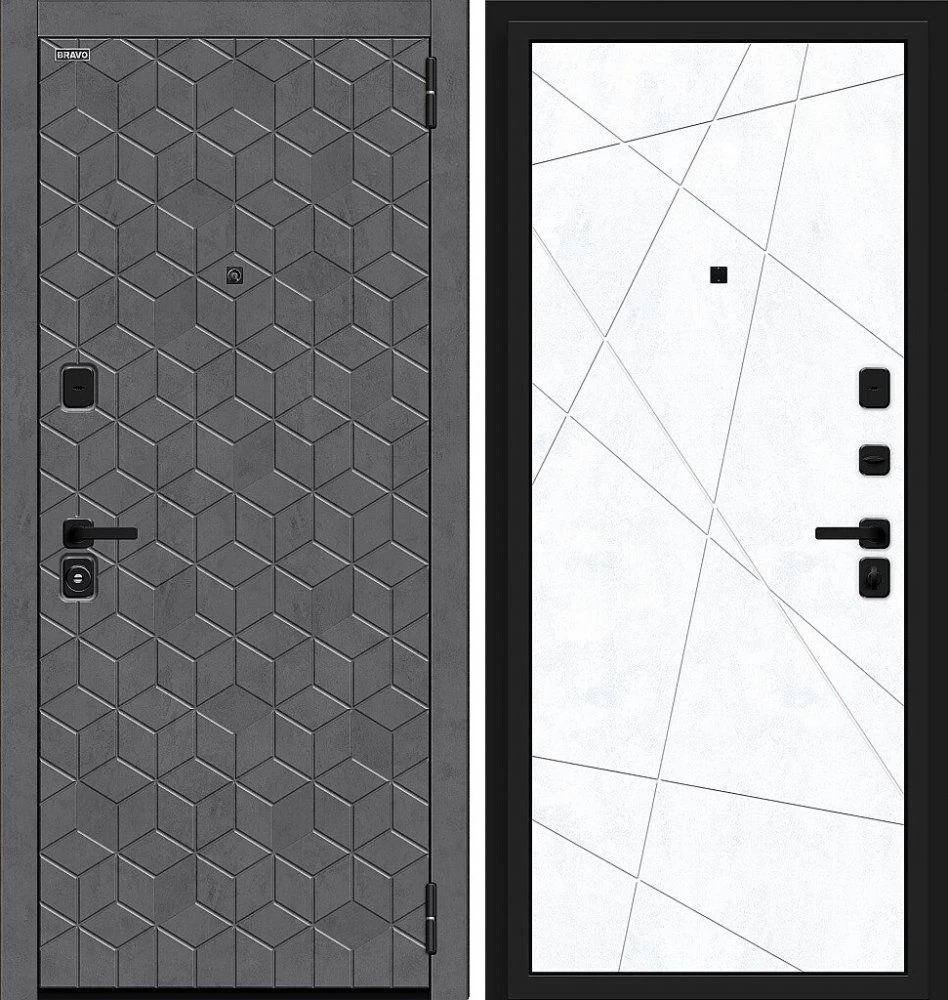 Надежная входная Дверь Браво Кьюб (RBE) Slate Art/Snow Art премиум класса по цене 38 529 руб. Большая толщина стали защитит от проникновения в ваш дом, квартиру или коттедж. Используется очень качественная фурнитура: замки, цилиндры, ручки, защелки. Покрытие и отделка двери изготовлено под внимательным контролем производителя. Дверь имеет долгий срок службы и гарантию.