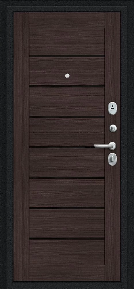 Надежная входная Дверь Браво Техно Букле черное/Wenge Veralinga премиум класса по цене 31 169 руб. Большая толщина стали защитит от проникновения в ваш дом, квартиру или коттедж. Используется очень качественная фурнитура: замки, цилиндры, ручки, защелки. Покрытие и отделка двери изготовлено под внимательным контролем производителя. Дверь имеет долгий срок службы и гарантию.